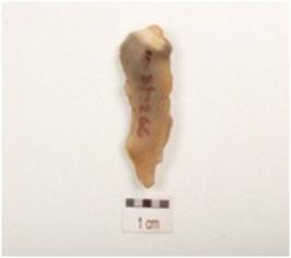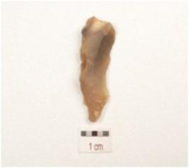 | Description / विवरण | A blade made of chalcedony with mid ridge on dorsal, trapezoidal in section use wear marks on cutting edge raw material given heat treatment and broken along one end. |