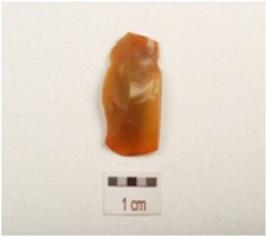 | Description / विवरण | A blade made of chalcedony with mid ridge on dorsal, trapezoidal in section, use wear marks on cutting edges and broken along one end. |
