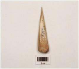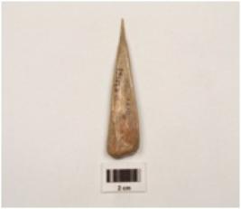 | Description / विवरण | A bone point with flat surface and tapered on one end, pointed one end other end thick, rectangula in section, well polished surface. |