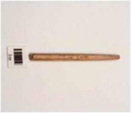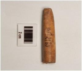 | Description / विवरण | Fragment of bone point, tapered towards pointed end, both ends broken, well polished, brownish colour, circular cross section. |