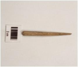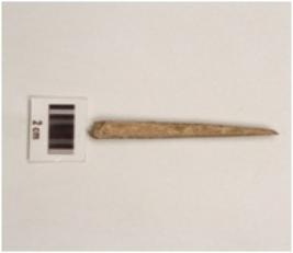 | Description / विवरण | Fragment of bone point with pointed one end slightly damaged other side broken, square in section, polished surface. |