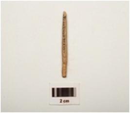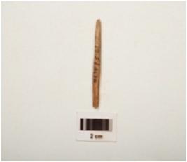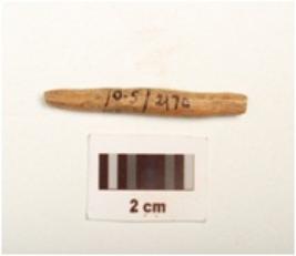 | Description / विवरण | Fragment of a bone point, both ends are partly broken, well polished surface brown in colour, |