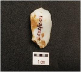 | Description / विवरण | A end struck flake made of chalcedony with prepared platform, diffused bulb on ventral traingular in section and use wear marks. |