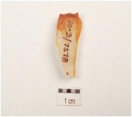 | Description / विवरण | A flake made of chalcedony with a ridge on surface, triangular in section, use wear marks on edges and broken from one end. |