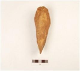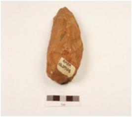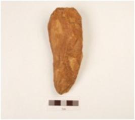 | Description / विवरण | A bifacial handaxe made on quartzite flake with flake scars on both sides sharp working edge and triangualr in section, thick butt end and pointed on other end. |