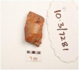 | Description / विवरण | A end struck flake with cortex on surface, striking platform, flattened section and use wear marks on edges. |