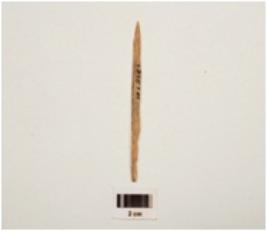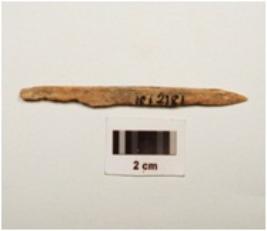 | Description / विवरण | A bone point, both ends are sharp pointed, well polished surface, light brown in colour. |