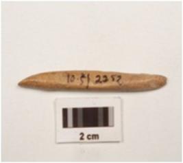 | Description / विवरण | Bone point, pointed both ends, smooth and polished surface. |