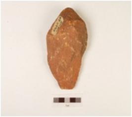 | Description / विवरण | A hand axe made on quartzite side struck flake, use wear cutting edges, broken pointed end, flake scars on surface, plano convex in section. |