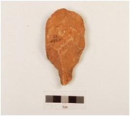 | Description / विवरण | A hand axe made on quartzite end struck flake, preapred platform on proximal end, flake scars on surface, pointed end. |