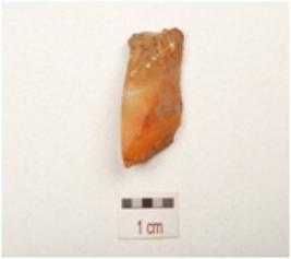 | Description / विवरण | A flake made of carnelian with triangular in section and use wear marks on edges. |