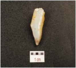 | Description / विवरण | A side struck flake made of chalcedony with prepared platform, single ridge, triangular in section and use wear marks on edges. |
