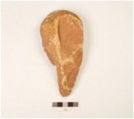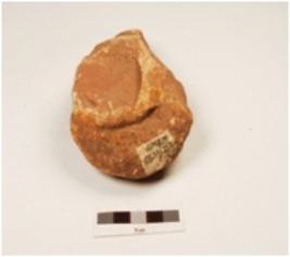 | Description / विवरण | A bifacial handaxe, made on quartzite pebble with flake scars on both sides, cortex on butt end and blunt working edge, thick butt end and pointed on other end. |