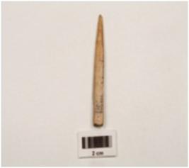 | Description / विवरण | Bone point one end is pointed but slightly broken other end is borken smooth and polished surface. |