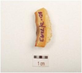 | Description / विवरण | A end struck flake made of agate with wavy white bands, rectangular section and blunt edge. |
