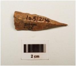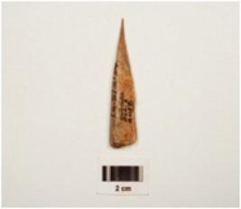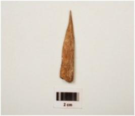 | Description / विवरण | A bone point, one end is pointed and other end is flat and broad, brown in colour well polished, |