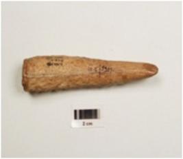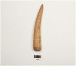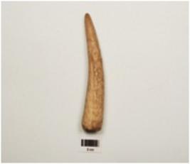 | Description / विवरण | Fragment of a point on horn-core with modifide and well polished surface, chipped off near pointed end to give a chisel like edge, thicker and broken other end, |