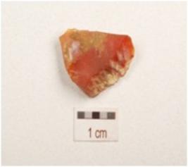 | Description / विवरण | A end struck flake made of carnelian with striking platform, triangular in section and use wear marks on edges. |
