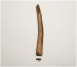 | Description / विवरण | Fragment of a point on a horn-core with modifide and well polished surface, broken alonge both ends, hellow in the center, |