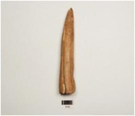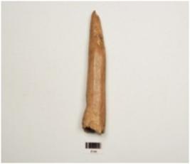 | Description / विवरण | Fragment of a point on horn-core with modifide well polished surface, chipped off near pointed end to give a chisel like edge, thicker and broken other end, |