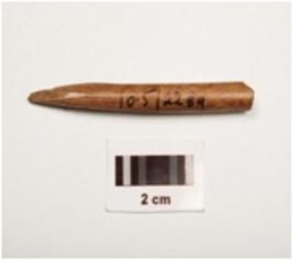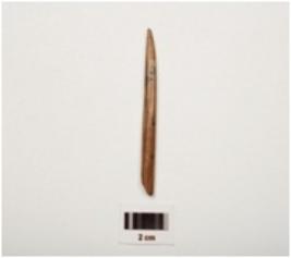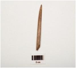 | Description / विवरण | A bone point with polished surface pointed at one end and semicircular cross section. |