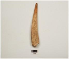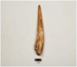 | Description / विवरण | A Fragment of a point on horn-core with modifide and well polished surface, pointed towards one end, thickar and broken, other end, crak on surface |