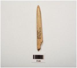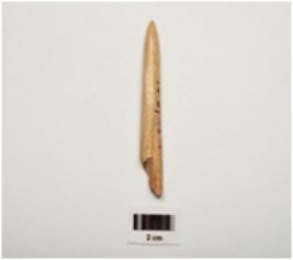 | Description / विवरण | A bone point with polished surface, pointed towards one end, broken at other end and rectangular cross section. |