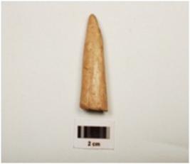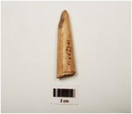 | Description / विवरण | Fragment of a point on horn with modifide well polished surface, chipped off near pointed end to give a chisel like edge, other end is thicker and partly broken |