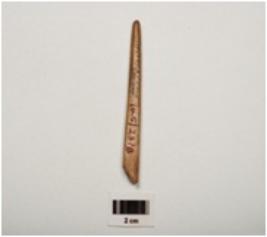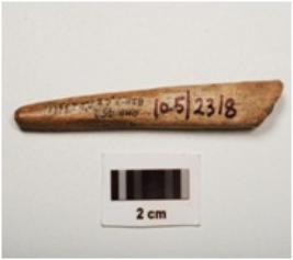 | Description / विवरण | Bone point with polished surface at one side & porous surface at other side, pointed at one end and rectangular cross section. |
