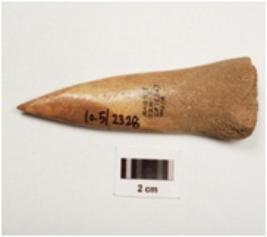 | Description / विवरण | Arrow head with polished surface at one side, porous surface at other side, pointed at one end and semicircular cross section. |