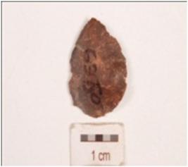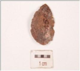 | Description / विवरण | Chert end struck flake, prepared platform, prominent bulb on ventral side. |