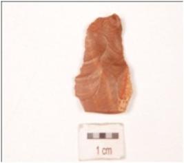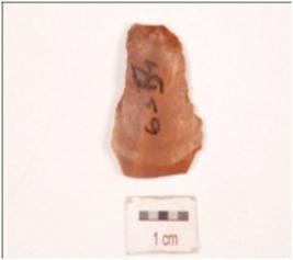 | Description / विवरण | Chert end struck flake, prepared platform and prominent bulb on ventral side. |