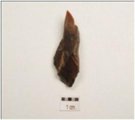 | Description / विवरण | Flake made on chert, six flake scars on surface, triangular in section. |