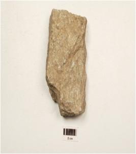 | Description / विवरण | A bifacial chopping tool made of quartzite, flake, wavy cutting edge, flake scars on both surfaces and triangular in section. |
