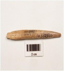 | Description / विवरण | Bone point, broken on both ends, rough surface and polished surface. |