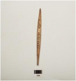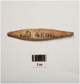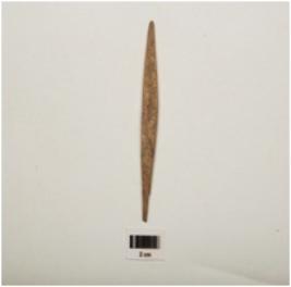 | Description / विवरण | Point with polished surface at one side & porous surface at other side, slightly broken at both ends, broad middle part and rectangular cross section. |