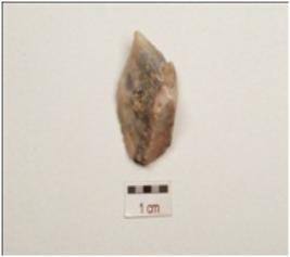 | Description / विवरण | Flake made on side struck chert flake, flake scars on dorsal surface use wear marks along cutting edge. |