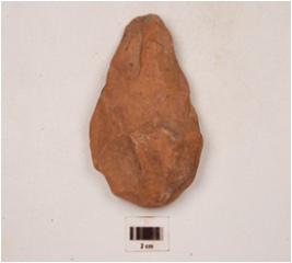 | Description / विवरण | A miniature handaxe made on quartzite end struck flake, cortex partly intact on one side, flake scars on both sides, plano-convex in cross section and wavy working edge. |