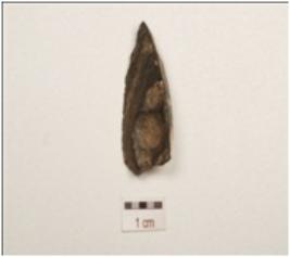 | Description / विवरण | Flake made on chert, three flake scars on dorsal side, prepared platform, use wear marks on cutting edge. |