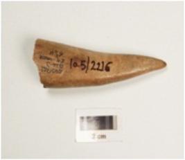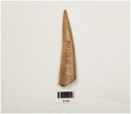 | Description / विवरण | Fragment of a point on horn with modifide and well polished surface, pointed towards one end, thicker and broken other end, |