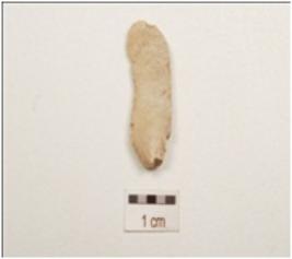 | Description / विवरण | Blade made on chert, with double ridge on dorsal side, use wear marks along the working edge, prominent bulb on ventral side, triangular in section. |
