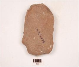 | Description / विवरण | A cleaver made on quartzite side struck flake, prepared platfrom, prominent bulb on ventral side, plano-convex in cross section and broad working edge. |