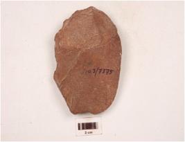 | Description / विवरण | A scraper made on quartzite end struck flake, biconvex in cross section, irregularly retouched cutting edge and flake scars on both side. |