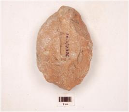 | Description / विवरण | A scraper made on quartzite end struck flake, biconvex in cross section, flake scars on both sides and irregularly retouched cutting edge. |