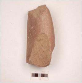 | Description / विवरण | A chopping tool made on quartzite pebble, biconvex in cross section and flake scars along the cutting edge. |