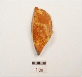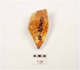 | Description / विवरण | A side struck chert flake with striking platform, triangular in section and use wear marks on edges. |