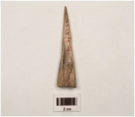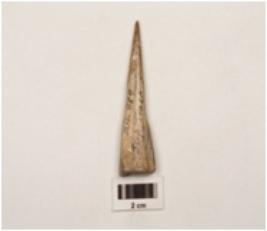 | Description / विवरण | A bone point with pointed one end other end thick and flat, brownish colour, well polished, circular tapered end. |