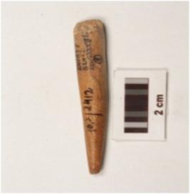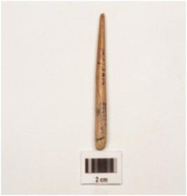 | Description / विवरण | Fragment of bone point , broken on both ends, polished, smooth surface and slightly damage surface. |