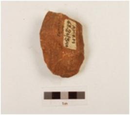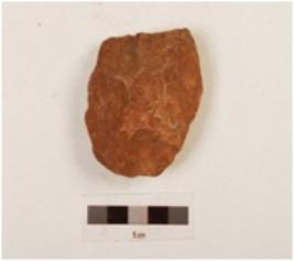 | Description / विवरण | A core made on quartzite pebble, flake scars on surface, use wear edges, biconvex in section. |