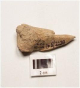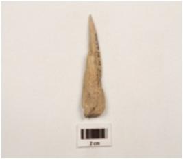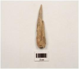 | Description / विवरण | A bone point with tapered one end, pointed one end other end uneven and thick, cracks on surface, uneven surface. |